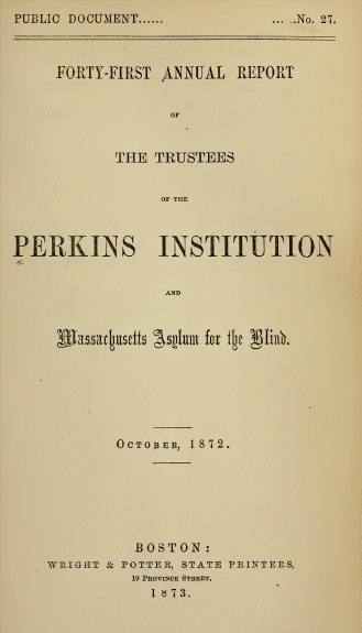 | Title: | Forty-First Annual Report Of The Trustees Of The Perkins Institution And Massachusetts Asylum For The Blind | |